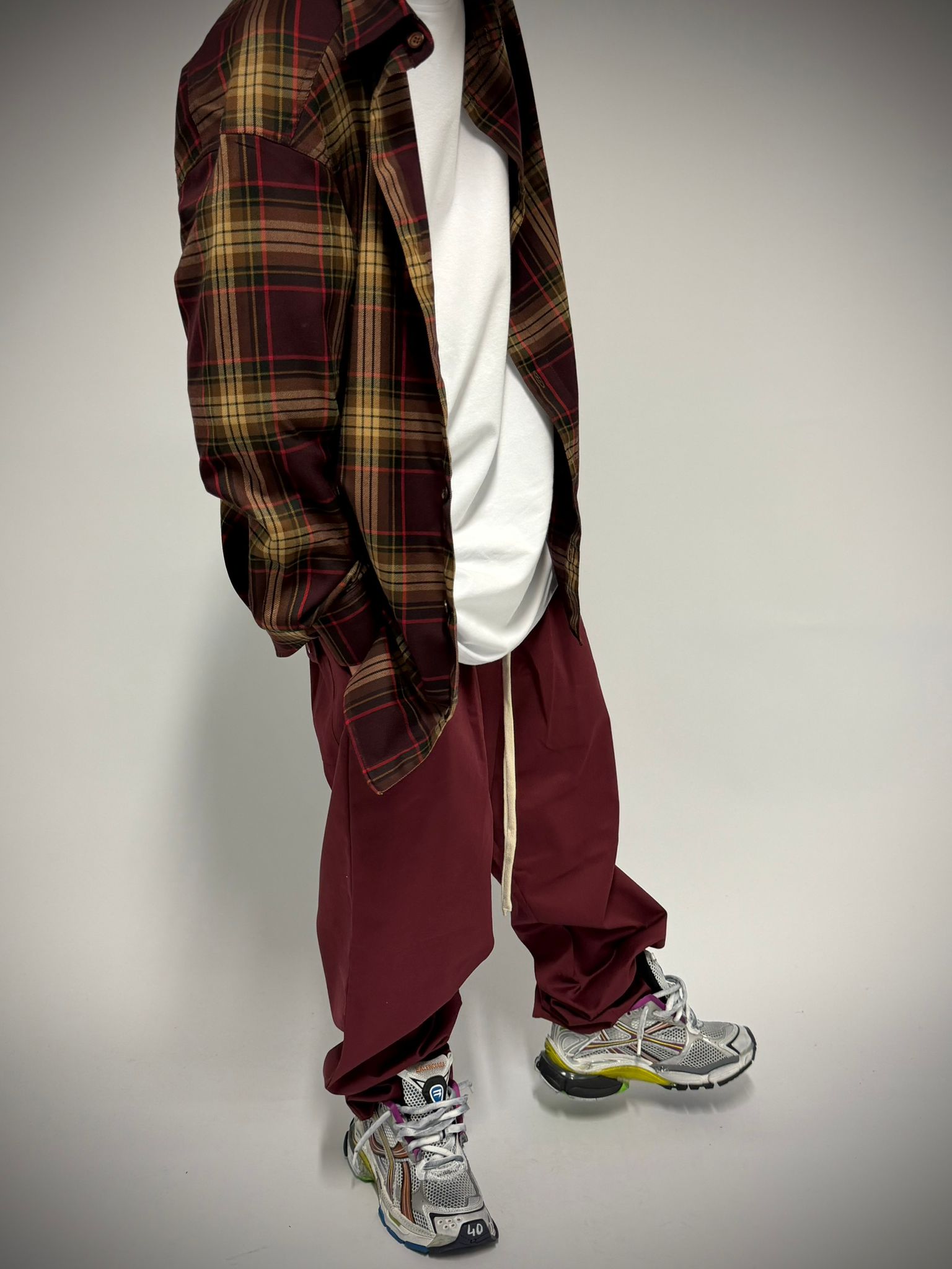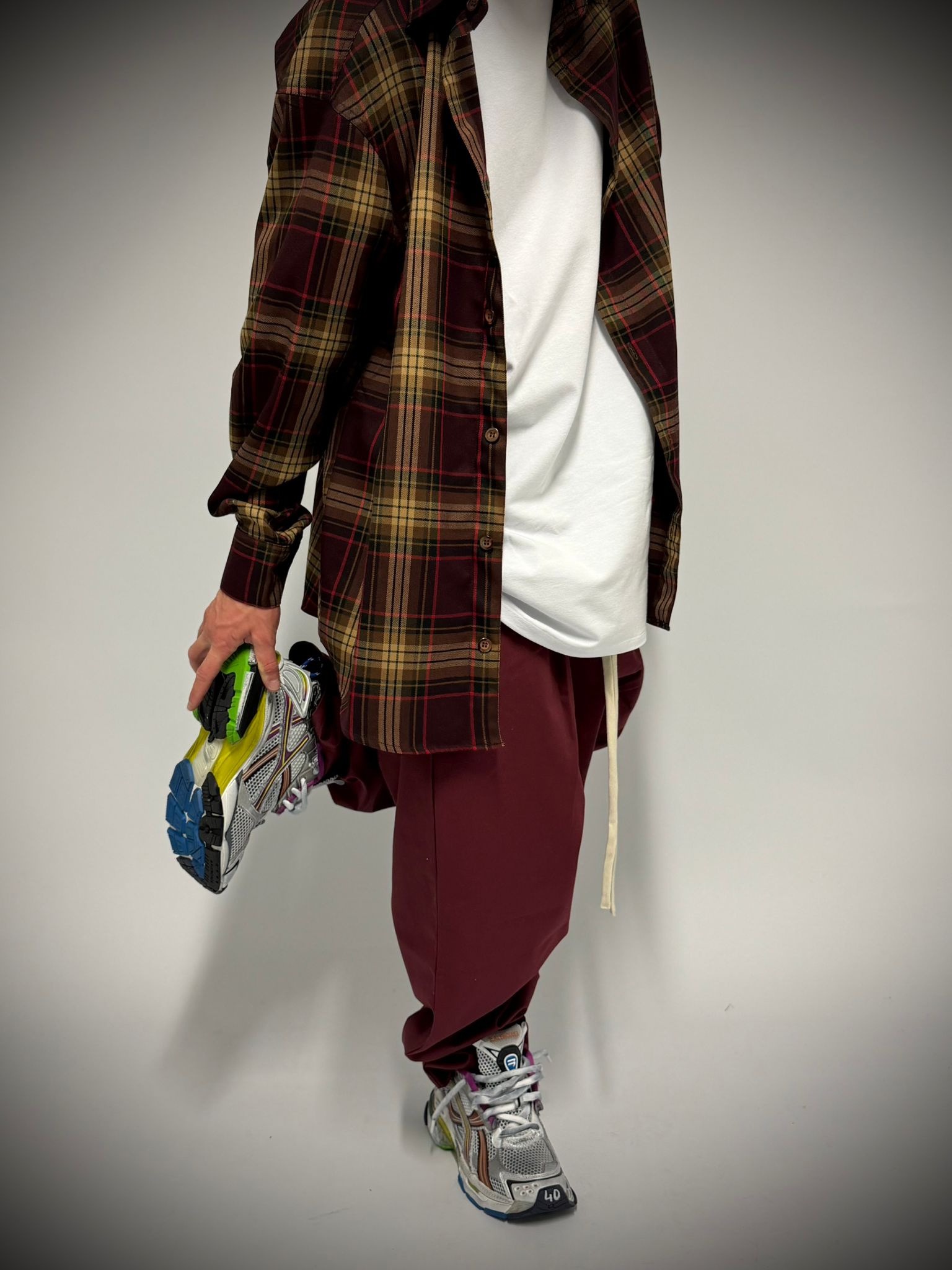 camicia a quadri bordeaux 100% made in italy