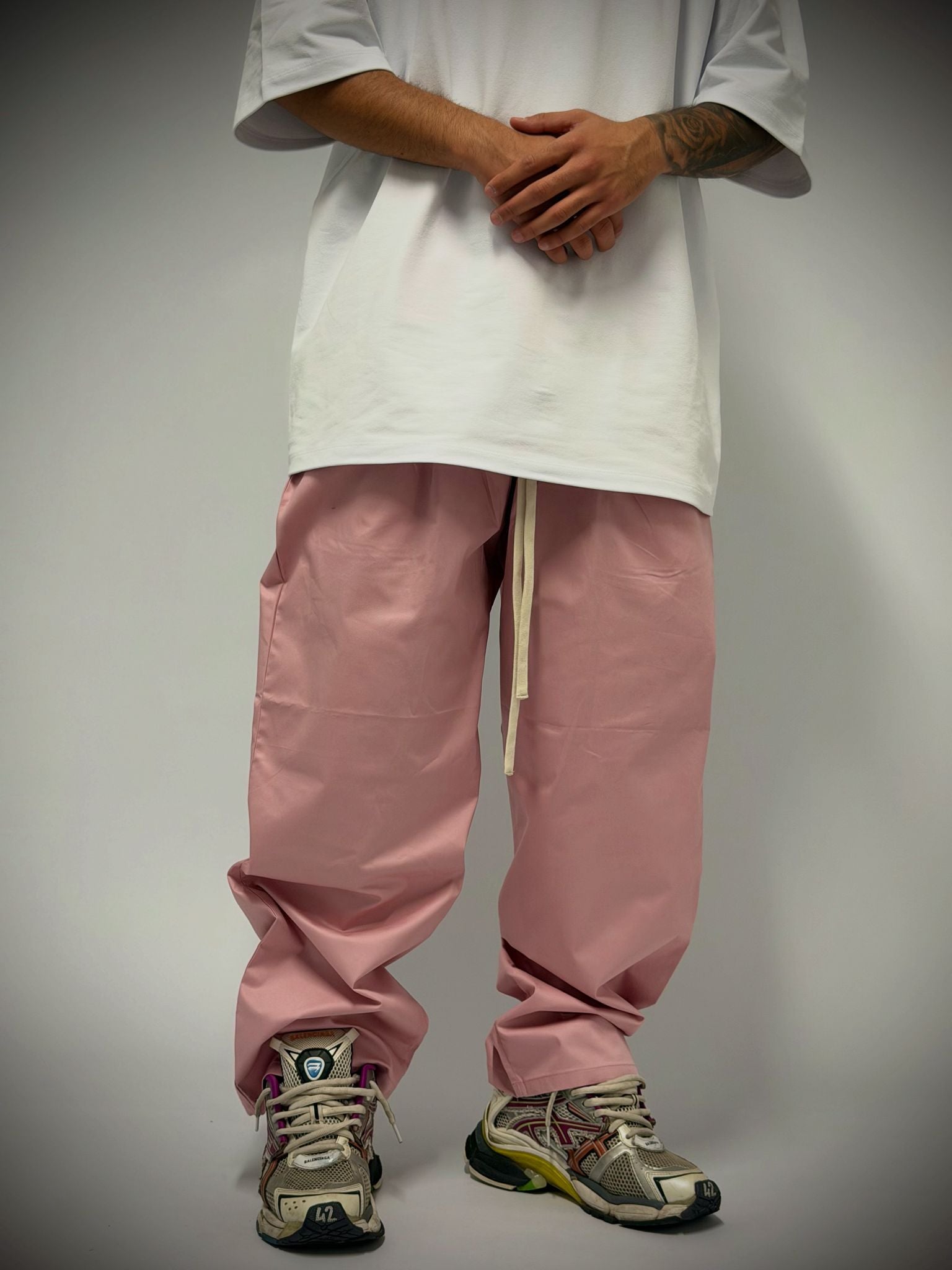 pantalone con elastico in vita rosa cipria oversize 100% made in italy