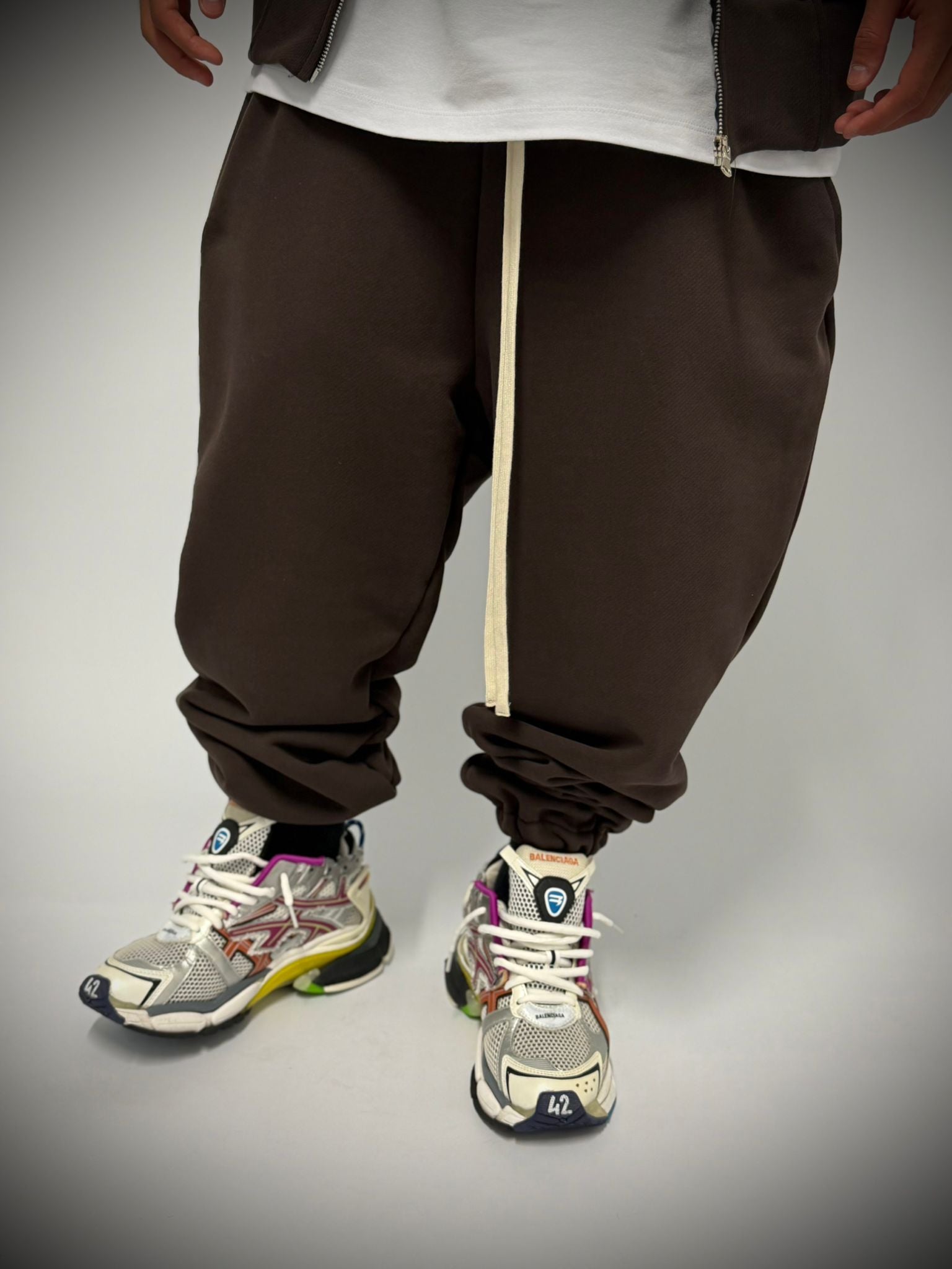 tuta marrone oversize con polsino al pantalone e felpa con la zip 100% made in italy